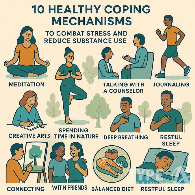 To combat stress and reduce substance use, adopting healthy coping mechanisms is crucial.