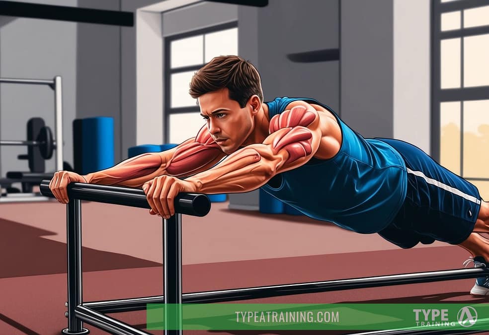 • Dips: Use parallel bars and lower your body to work on your chest, shoulders, and triceps. For beginners, try bench dips with your feet on the ground.