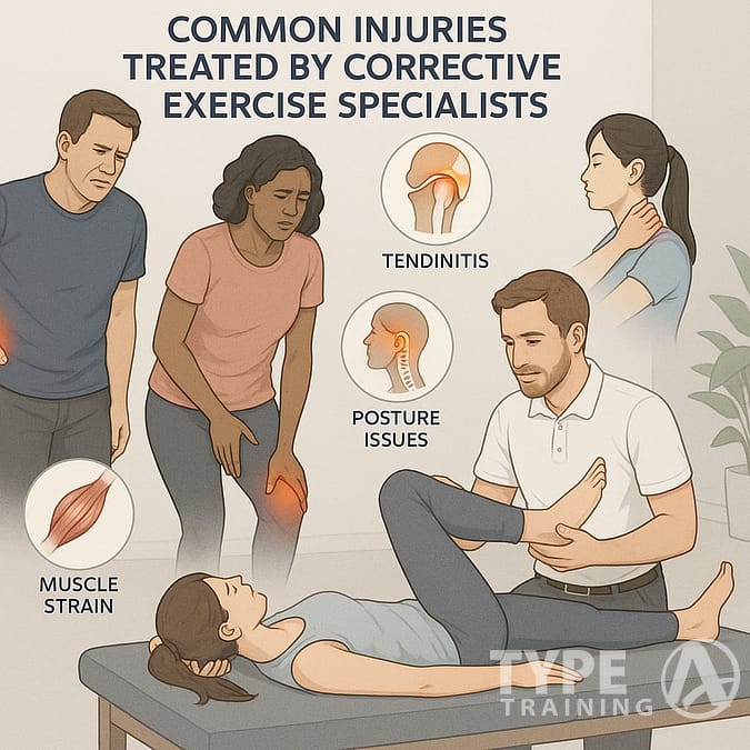 For instance, common injuries treated by corrective exercise specialists can include chronic back pain, knee issues, and more.