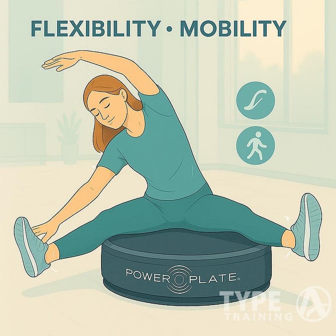 Some folks use the Power Plate for flexibility and mobility. Gentle stretching on the platform can loosen tight muscles and help you move better.